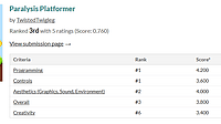 Hey guys! The Godot 2MB Jam ended and Paralysis Platformer tied for 3rd place ! Looking at the results from the jam, it was a really close call on which project would place where, and I am honored to...
